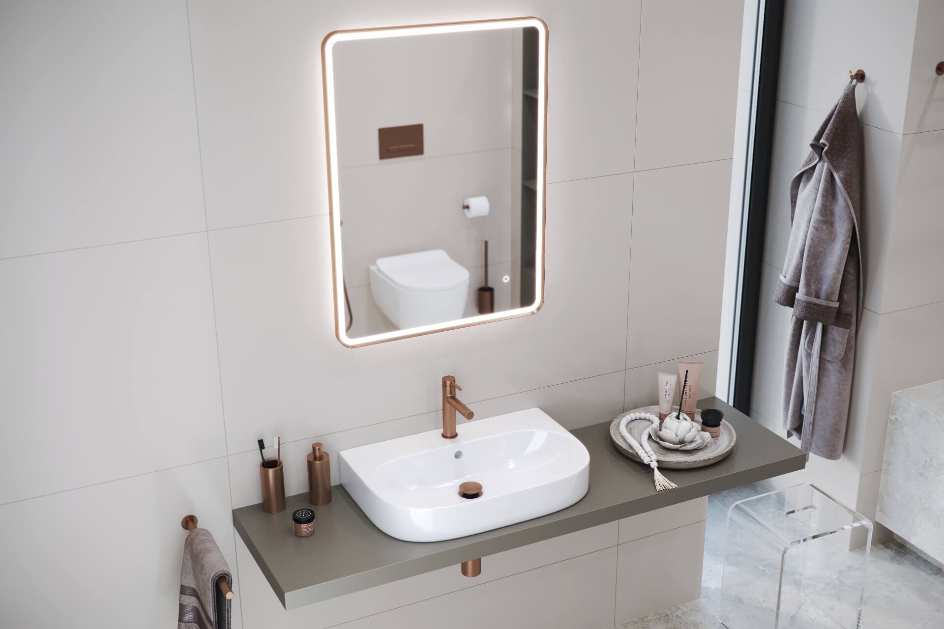 Excellent – lustro 80×60 Corido LED, miedziany szczotkowany