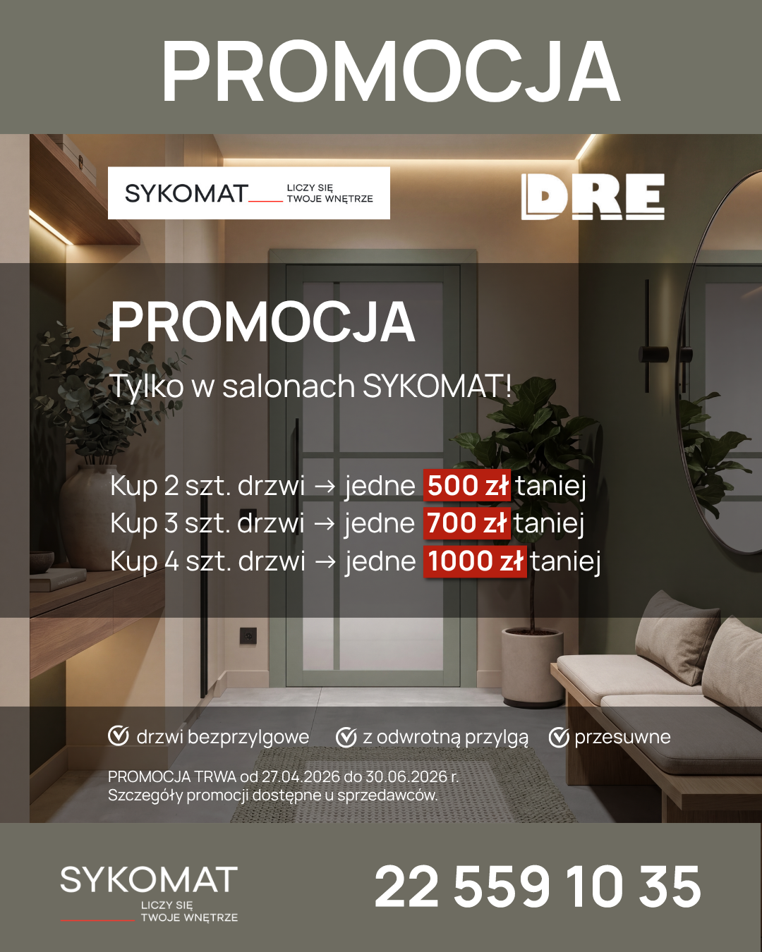 Promocja – drzwi DRE taniej w salonach SYKOMAT
