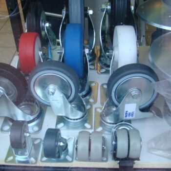 Klamki okienne i drzwiowe, ograniczniki otwarcia, zamki, zawiasy, okucia, uszczelki okienne i drzwiowe. Kratki i wentylatory, kanały wentylacyjne różnych typów w tym do kominków. Drzwiczki do otworów rewizyjnych plastikowe i metalowe, maskownice do oklejania glazurą. Skrzynki listowne wmurowywane w ogrodzenie. Okucia meblowe, kołki rozporowe itp. Listwy i narożniki mosiężne, aluminiowe do glazury, terakoty, paneli, klepki oraz obrabiania krawędzi.